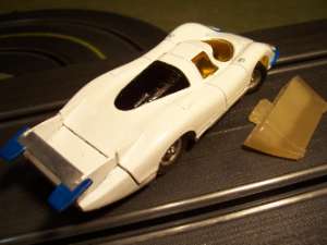 La voiture a la largeur d'une voiture Ho mais fait environ 10 mm de plus en longueur, par conséquent un châssis genre Tyco ou Aurora allongé peut convenir ainsi que les roues